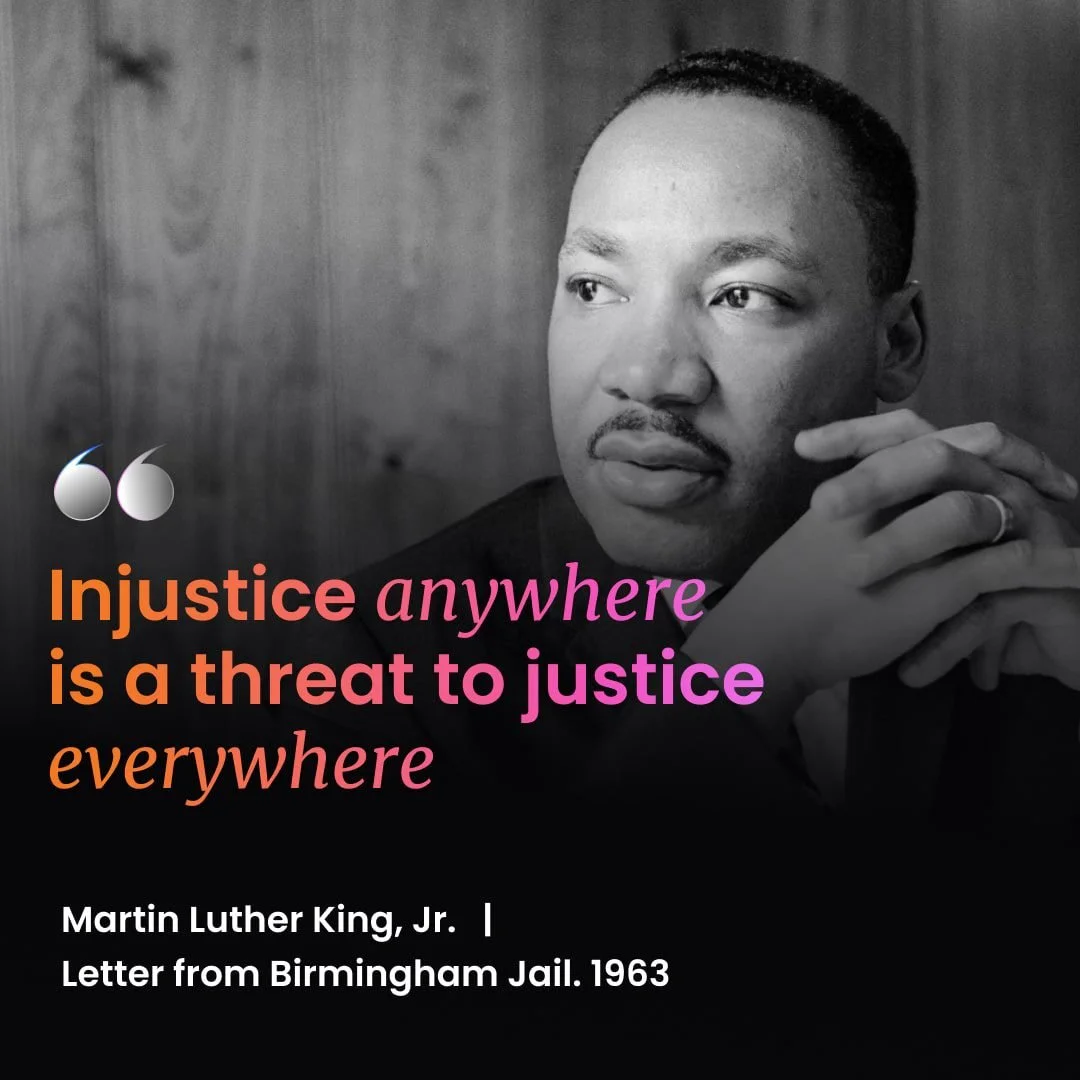 Martin Luther King, Jr. famously said, "Injustice anywhere is a threat to justice everywhere.” His point, if it needs explaining, was simple yet profound. If we allow some to suffer injustice, we aren’t just sanctioning injustice against particular people, we are sanctioning injustice itself, meaning it could spread anywhere, to anyone. You may be next, and justice for some does not make a just society.